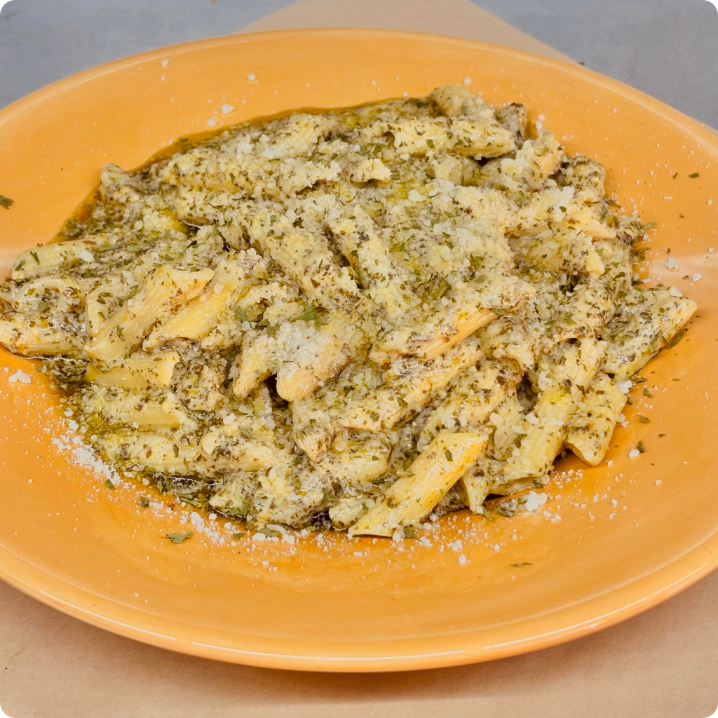 Penne pasta, creamy Pine Nut & Basil sauce, Parmesan