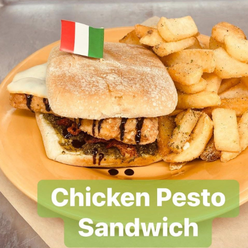 Crispy Chicken, Pesto, Smoked Mozzarella, Sundried Tomatoes, Balsamic Glaze
